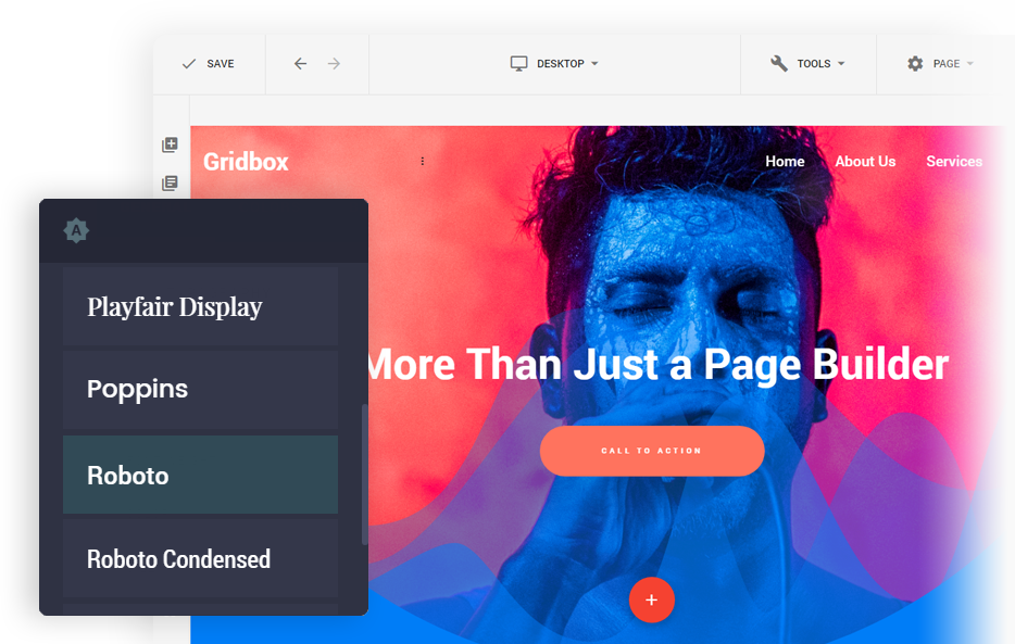 Gridbox responsive editor allows you to configure everything - sizing's, colors, spacing's, menu, etc. Your website will look awesome on all devices!